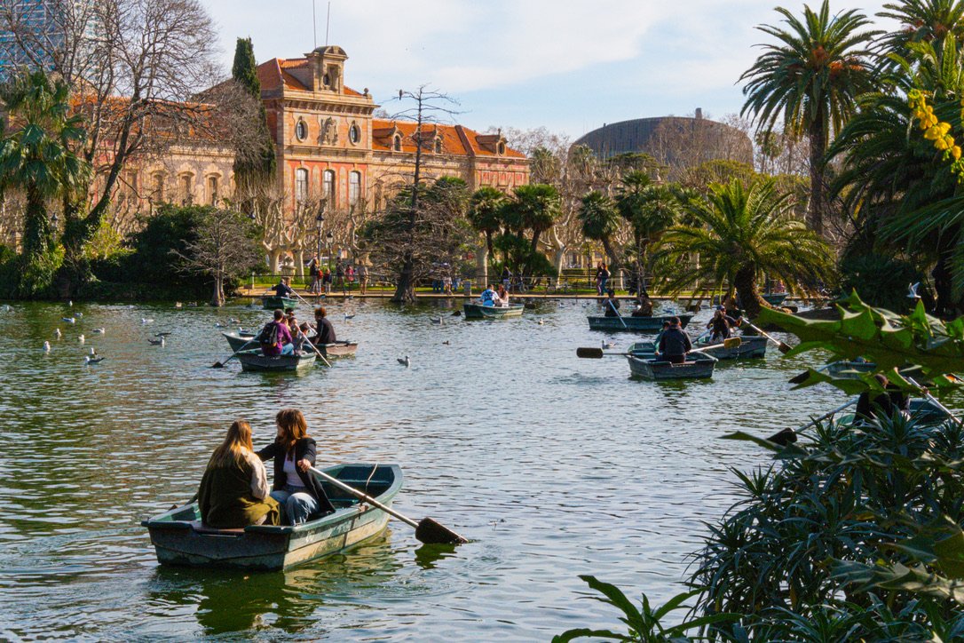 Parc de la Ciutadella is a large public park in Barcelona with lawns, shaded paths, and gardens. It has a large boating lake where you can rent rowboats, and the Cascada Monumental fountain with sculptures and a golden chariot. The park also contains palm trees, flower beds, and playgrounds, making it popular for walking, picnics, and relaxing. Inside the park, you’ll also find the Barcelona Zoo, a greenhouse (Umbracle), and the Catalan Parliament building.