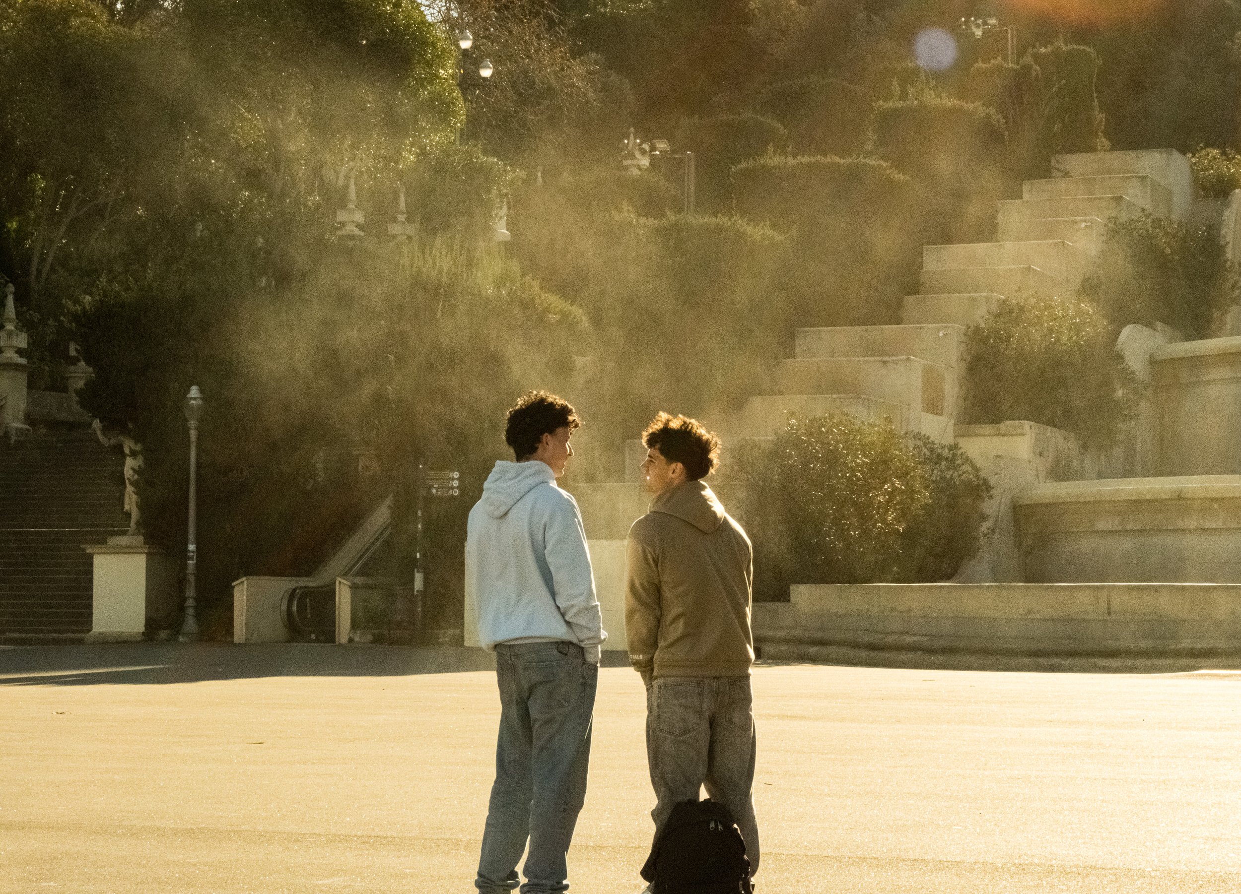 Balconies lean so close you could pass a cigarette between them. Plants spill from rusted railings, laundry sways overhead, and shutters hang slightly crooked — each with a story you’ll never quite know. In some alleys, light barely filters through, slicing sharp diagonals across the cobblestones. In others, it arrives like theater — cutting through shadow in stark beams, catching on dust, chrome, or the curve of a passing shoulder.