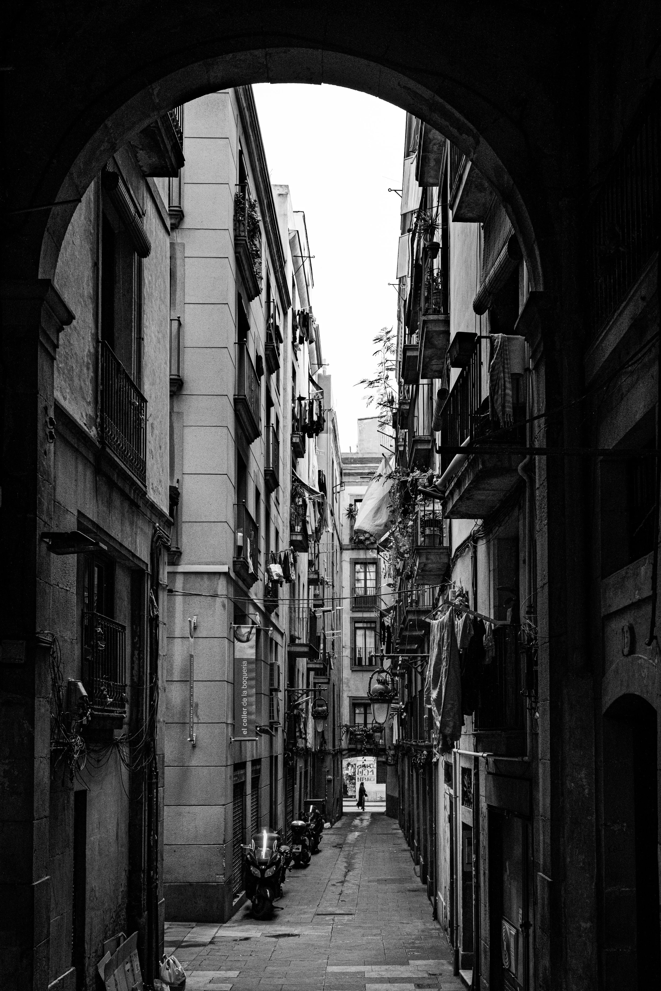 The alleys of Barcelona (especially in Gothic Quarter) don’t announce themselves — they pull you in. One moment you're on a bustling boulevard, and the next you've slipped into a corridor of shadows and echoes. They're tight, uneven, and alive. Footsteps bounce between stone walls, occasionally broken by the growl of a scooter weaving through at improbable speed.