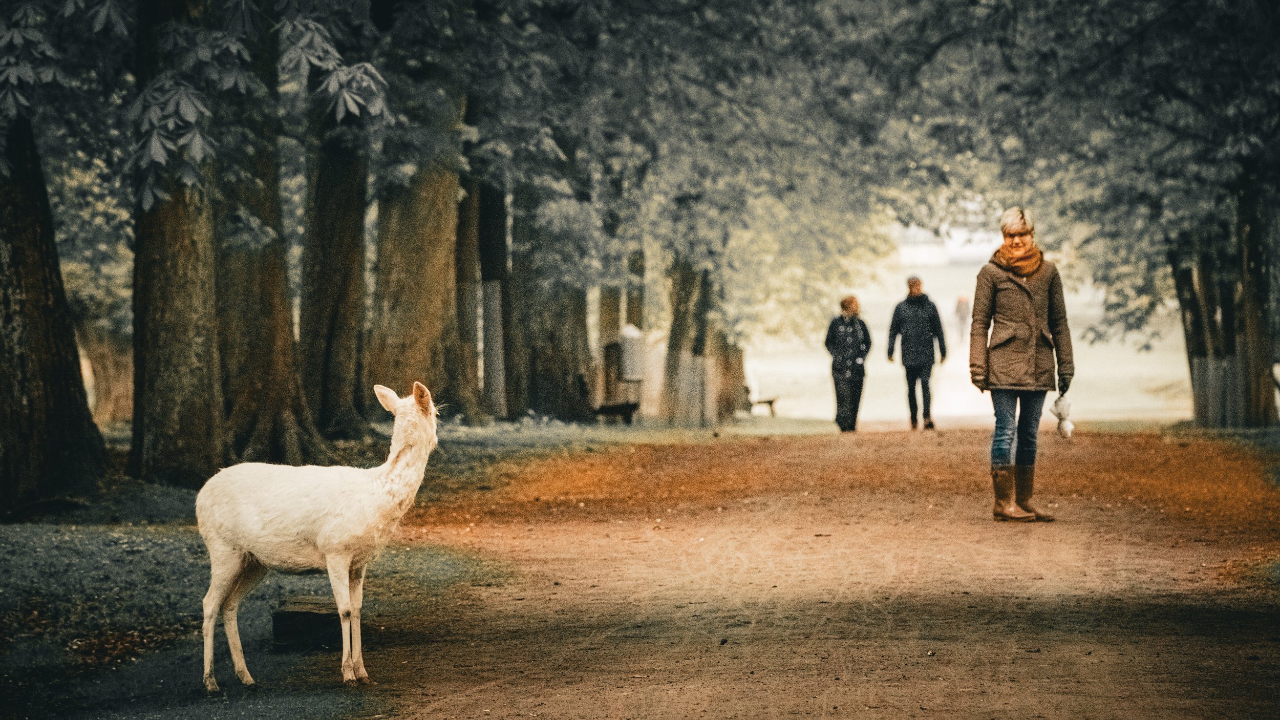 The lady stopped as a few deer crossed the pathway. She looked genuinely delighted to witness the moment. I’m not sure the deer shared the same sentiment though… But I’m really happy with this shot.